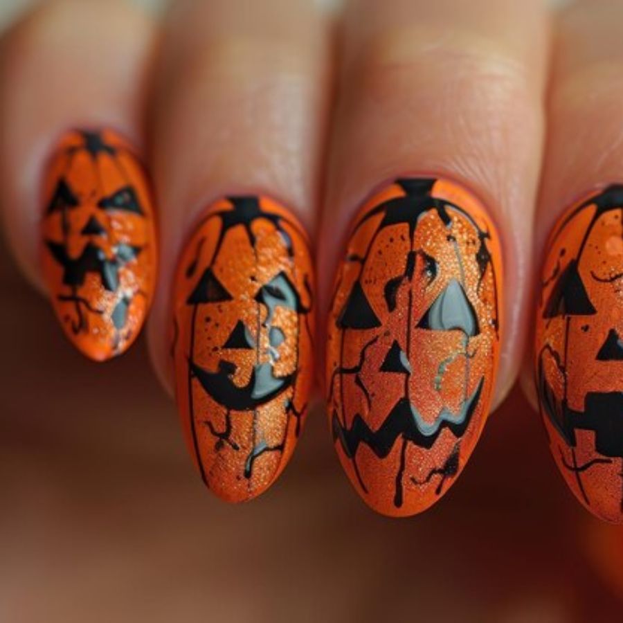 Pumpkin Nails: Classic pumpkin-inspired nails remain a Halloween favorite. This year, expect intricate pumpkin art combined with autumnal colors, such as deep oranges and earthy browns, adding warmth and seasonal charm. At Queen Nails, these designs can be customized with metallic accents or matte finishes for an added touch of sophistication.